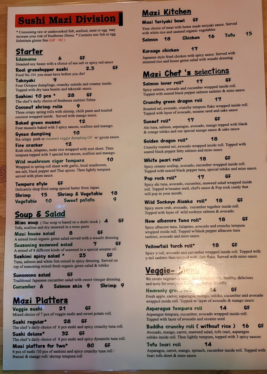 Welcome to Sushi Mazi, a hidden gem located at 2126 SE Division St, Portland, OR. Known for its cozy atmosphere and exceptional sushi, this restaurant promises a culinary journey through traditional Japanese flavors. The menu features an array of enticing options, from the California Roll and the luxurious Real Rainbow Roll to unique creations like the New Veggie Delite Roll and tantalizing tempura dishes.